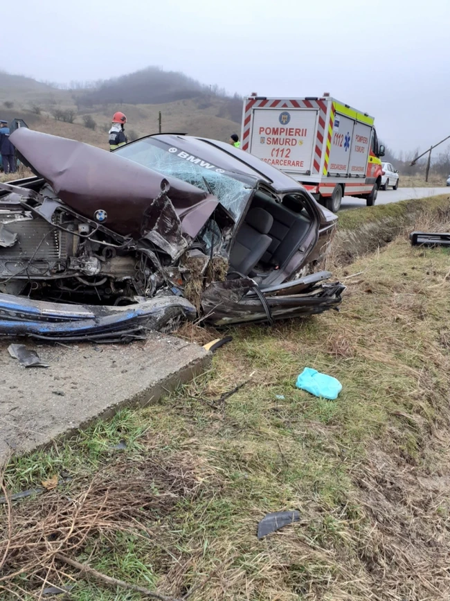 Maşină făcută praf într-un cap de pod, la Ocnele Mari. Două victime, încarcerate