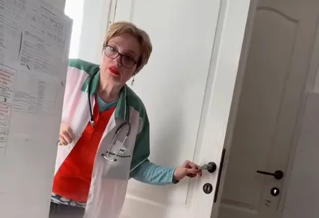 „Ia uite-te, bă!”, se aude din nou doctorița, din cabinet, țipând. „Te rog să pleci de la ușa mea imediat! N-are ce să caute! Hai, marș!”