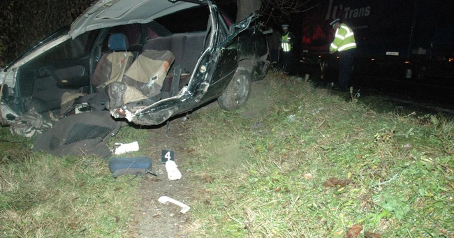 Potrivit poliţiştilor evenimentul a avut loc la ora 00.05, când un Opel Vectra, condus de Radu D de 22 de ani a pierdut controlul direcţiei şi a lovit violent cu partea stângă un copac situat pe marginea drumului, autoturismul rupându-se practic în două.