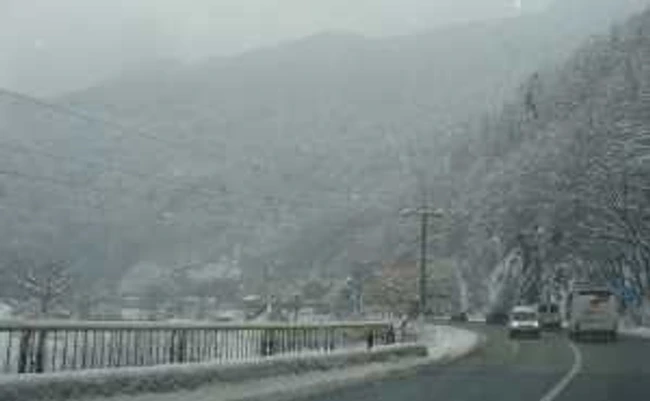 RÂMNICU VÂLCEA: Drumul spre staţiunea Vidra, pe Valea Lotrului, acoperit cu zăpadă