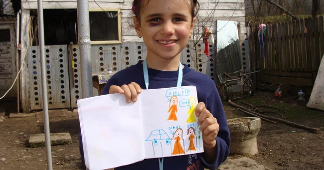 În această dimineaţă în satul Lunca, din Ocnele Mari, o fetiţă zglobie, cu ochi mari, căprui, toată numai zâmbet, se joacă cu sora ei mai mică, Melisa, şi smotocesc un căţel jucăuş. Tatăl copilei, Laurenţiu, acar la gara din Râmnicu Vâlcea, ne roagă să nu o întrebăm nimic de cele întâmplate. „N-a vrut niciodată să vorbească, dar i-am luat culori şi pe un carneţel a început să deseneze ceea ce i s-a întâmplat", spune părintele. Daria, fetiţa accidentată, elevă în clasa I-a la Şcoala nr. 10 din Râmnicu Vâlcea, ne arată carneţelul cu un „autoportret", în care se vede cum ea traversează pe trecere, pe culoarea verde a semaforului, iar o maşină se apropie de ea.