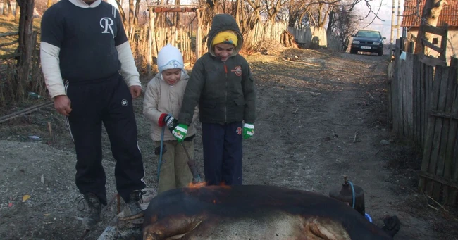 Râmnicu Vâlcea: Sacrificarea porcului, tradiţie printre gospodari (FOTO)