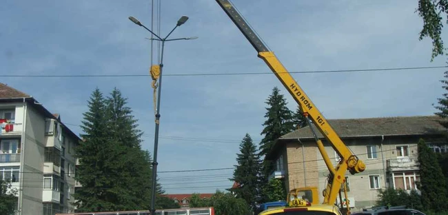 Astăzi, în intersecţia bulevardului Calea lui Traian cu strada Dacia se monta, cu ajutorul unei macarale, un stâlp de iluminat public. În ultima săptămână, lucrătorii Direcţiei Administrării Domeniului Public din cadrul Primăriei Râmnicu Vâlcea au înlocuit becurile, bobinele şi igniterele pe străzile Ştirbei Vodă, Nicolae Titulescu, Republicii, Ion Referendaru, Matei Basarab, Mărăşeşti, Buna Vestire, Grigore Procopiu şi Nicolae Epure, precum şi la blocurile ANL din Ostroveni sau la blocurile A28/II, A27/III, A37/II, C6 şi C7 de pe faleza Oltului. În plus, au fost montate lămpi la stâlpii din zona blocurilor P1 - P2 - C11.