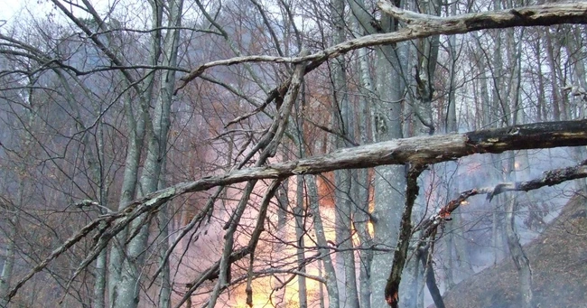 S-au reaprins incendiile în Munţii Lotrului. La Malaia arde pădurea de foioase