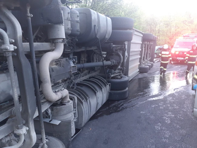 0Familia unui șofer de TIR din Sălaj a ajuns în spital, în urma unei manevre greșite a conducătorului auto care a dus la răsturnarea autotrenului pe șosea și implicit blocarea traficului pe DN7 - Dealul Negru, în Vâlcea.