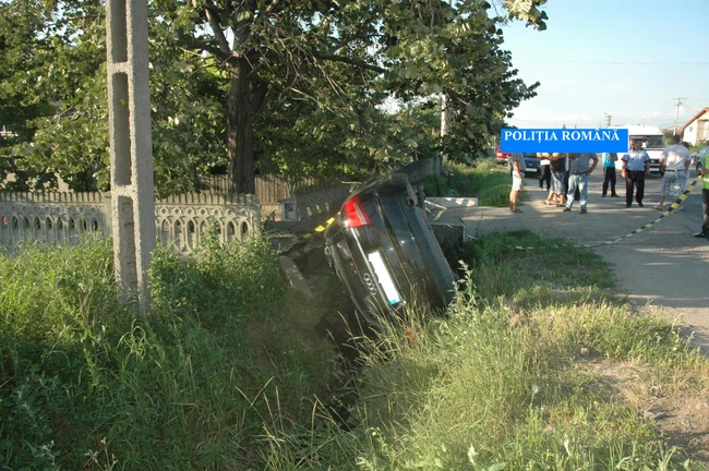 Un şofer precaut care a vrut să evite un accident, a intrat cu maşina în şanţ, rănindu-se