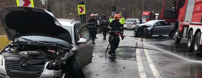 Din primele informaţii reiese că accidentul s-a produs în urma coliziunii dintre două autoturisme. „Traficul auto în zonă este întrerupt”, au mai transmis cei de la ISU.