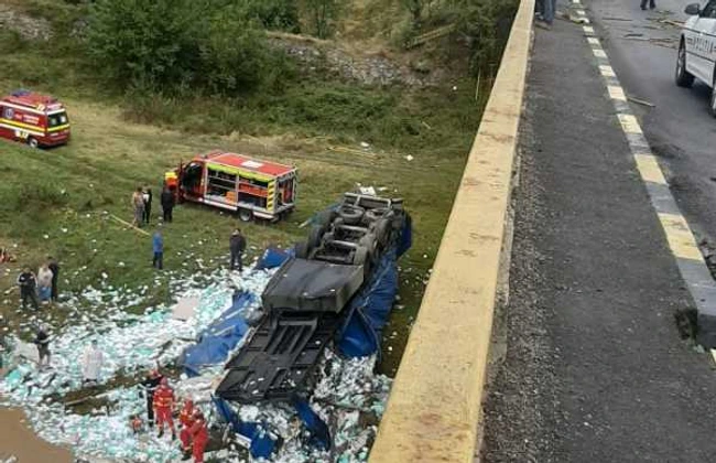 0Un camion plin cu marfă a căzut marţi, 6 octombrie, de la zeci de metri înălţime, de pe un viaduct din Brezoi. Traficul rutier pe DN 7, la km 207, este blocat.