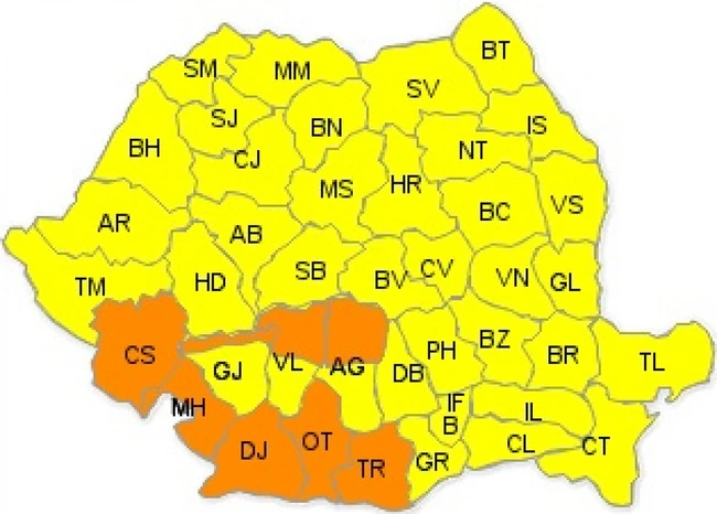În perioada 22 martie, ora 10 – 22 martie, ora 18 avem cod portocaliu de vânt puternic şi ninsori viscolite. În Munţii Banatului şi în jumătatea vestică a Carpaţilor Meridionali va ninge, va fi viscol, iar vitezele la rafală vor depăşi 100-120 km/h.