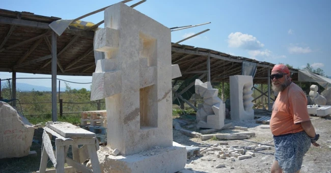 Când spui artist, poate te gândeşti la un individ spicluit, dichisit, aranjat ca pentru un vernisaj. Aici însă, am dat peste nişte omuleţi, acoperiţi de un strat gros de praf alb, din cap până în picioare. Exact lângă intrare, lucrează un bărbat înalt, cu barba albă de la praf, dar nu numai. Când şi-a dat ochelarii jos, l-am recunoscut pe sculptorul Eugen Petri, dirijorul acestei orchestre de artişti, care transformă piatra în opere de artă.