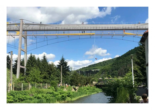 Strategia de recuperarea a unui obiect cu identitate pentru reşiţeni îşi propune să unească zona urbană centrală cu peisajul natural din proximitatea acestuia, prin accese pietonale şi de biciclete către o privelişte spectaculoasă şi plină de adrenalină de la peste 30 de metri ce conectează traseele existente pe Dealul Golului şi Dealul Crucii.