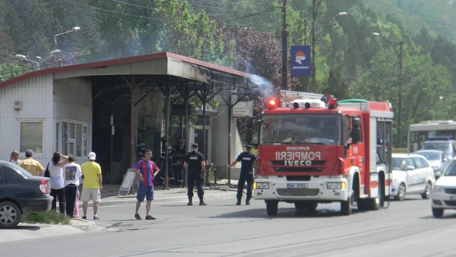 Panică şi agitaţie astăzi în cea mai aglomerată staţie de transport în comun din Reşiţa. Langoşeria ce funcţiona în staţia Nera a luat foc, iar pasagerii au fost primii care au sunat la 112. Cel mai probabil incendiul a pornit de la un scurtcircuit electric, iar la acea oră nici un angajat al langoşeriei nu se afla în chioşc.