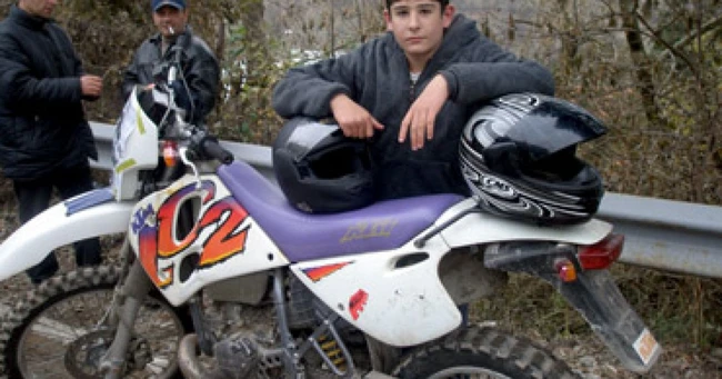 0La numai 15 ani, adolescentul petrece ore întregi pe şaua motocicletei sale, cu care se aventurează pe trasee accidentate.