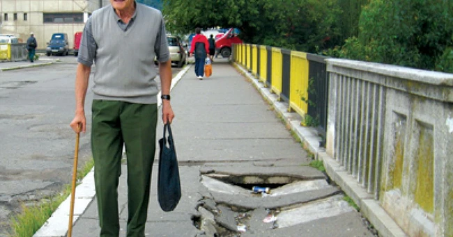 Reşiţa: Reşiţenii îşi rup picioarele în gropile adânci de pe trotuar VIDEO