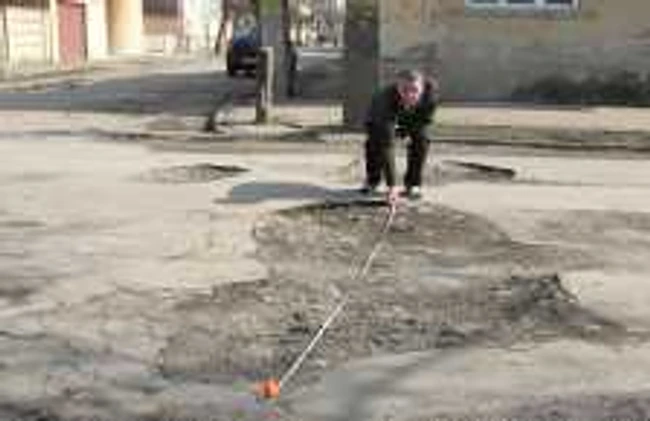 0Un crater de peste trei metri lungime şi 1,70 lăţime ocupă întreaga intersecţie a străzilor Chendi şi Bacovia. Strada Balta Blondă, spre cartierul vitregit Sătmărel, este de departe, cea mai ciuruită stradă din oraş.