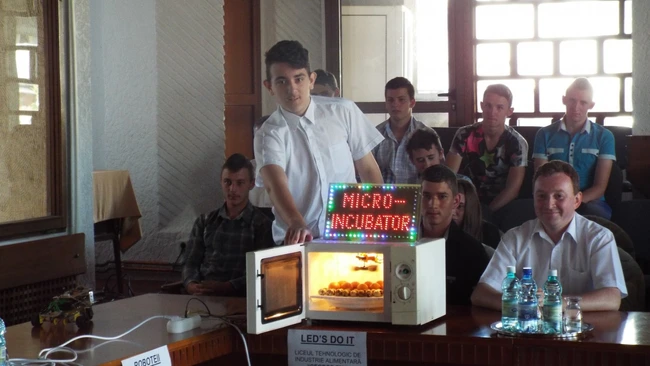 S-au înscris în concurs cu echipa LED”S DO IT şi s-au pus pe treabă de îndată. Ştiind că există investitori care îşi pun afacerile la clocit în incubator, şi în cel mult 20 de zile scot ''pui'' de afaceri profitabile, şi asta cel mai mult în cazul crescătorilor de prepeliţe, au început să lucreze la un astfel de incubator de ouă de prepeliţe. Acesta are capacitatea de 72 de ouă de prepeliţe dar şi de 30 ouă de găină.