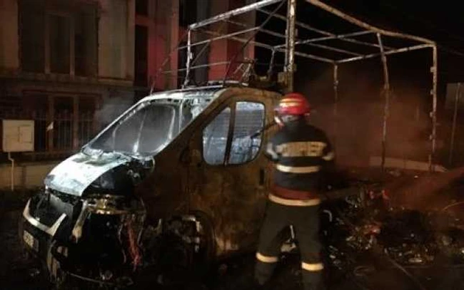 O autoutilitară a ars ca o torţă, în plină noapte. Pompierii nu au putut salva nimic
