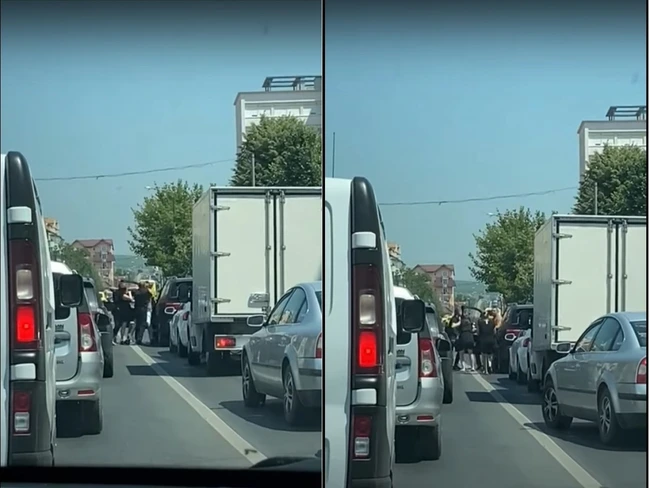 Bătaie în trafic la Sibiu. Agresorii, potoliţi de însoţitoare VIDEO