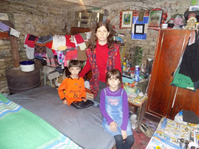 Gabriela şi copiii ei trăiesc doar din alocaţii şi din ajutoarele sociale, aproximativ 600 de lei în fiecare lună. Jumătate din bani merg pe chiria pentru pivniţă.