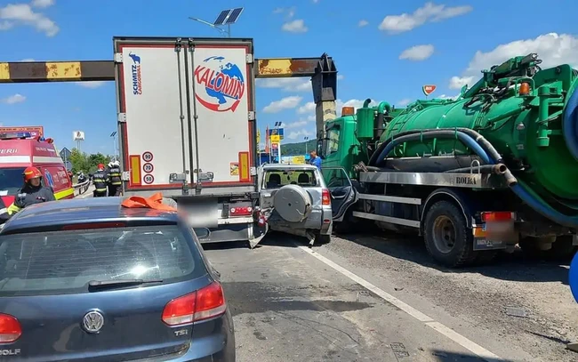 0Un grav accident rutier, pe fondul nepăstrării distanței în mers, s-a produs vineri, 30 iunie, în apropierea sensului giratoriu de la Veștem - Sibiu, care a dus la întreruperea circulației pe DN7 / E81.