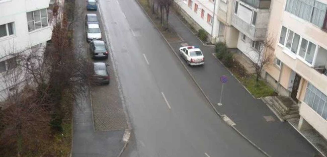 Parcare de poliţişti: pe trotuar, unde oprirea era interzisă. Peste drum, în parcare, erau locuri libere