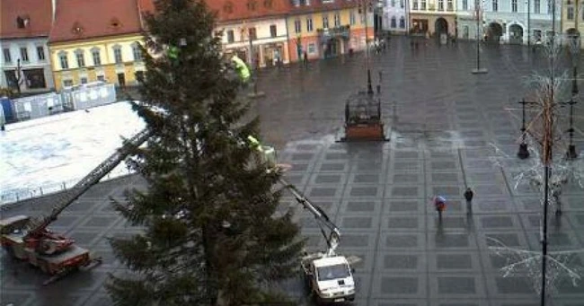 Sibiu: Bradul de Crăciun din Piaţa Mare ajunge în sobele săracilor din oraş
