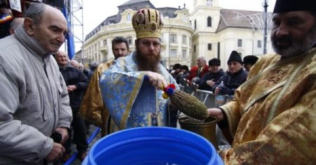 0Mii de sibieni s-au îmbulzit astăzi în centrul oraşului pentru a lua apa sfinţită de Bobotează.