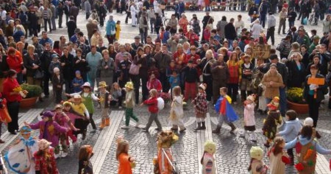 Manifestarea a debutat cu o slujbă de binecuvântare a recoltei, după care copiii de la grădiniţele din oraş şi-au prezentat costumele de toamnă.