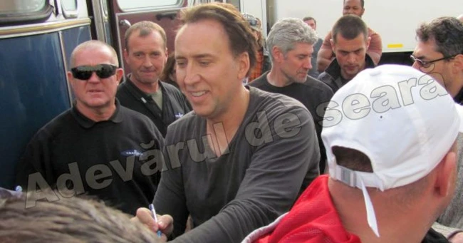 Efortul celor care au strigat numele lui Nicolas, s-a dovedit până la urmă a fi unul eficient. Nicolas Cage a apărut în faţa lor, în carne şi oase, după aproximativ 15 minute. Actorul principal diin viitoarea producţie „Ghost Rider 2”, a dat autografe preţ de 5 minute, după care a plecat spre biserica de pe strada Şelarilor, acolo unde erau programate filmări. Scene pentru filmul american se vor trage până sâmbătă şi în Piaţa Mare şi în Piaţa Mică.