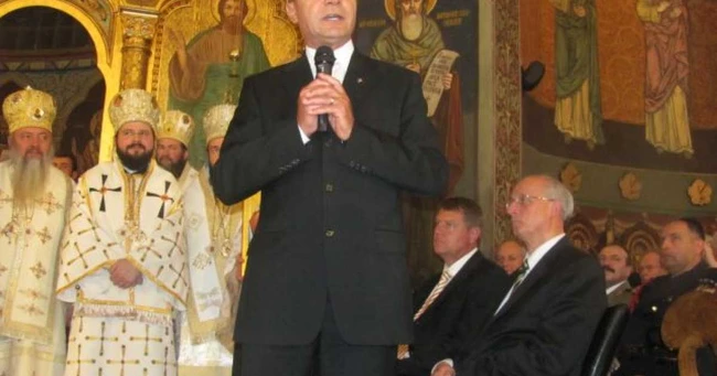 Băsescu a ales să vorbească în catedrală, în momentul în care i-a fost înmânată icoana.