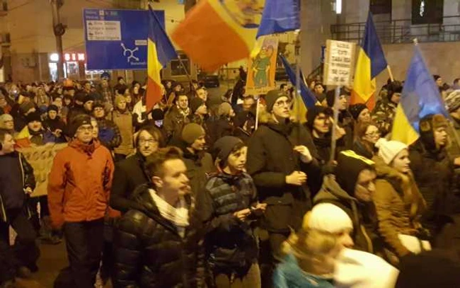 Peste 2.000 de sibieni au pornit in mars din centrul orasului. Mai multi tineri cara cofraje cu oua, pe care le depun in fata sediului PSD, aflat pe traseul manifestantilor. "Daca nu au oua sa demisioneze, le-am adus noi. Pentru ca acest Guvern trebuie sa plece, sa vina altul", spune unul dintre protestatarii care se alatura "depunerii de oua", dupa cum numeste el actiunea. Spre diferenta de celelate seri, in fata sediului social-democratilor sibieni coloana sta mai multe minute pentru a scanda. "PSD, partidul mafie!" si "Demisia!" sunt cele mai energice.