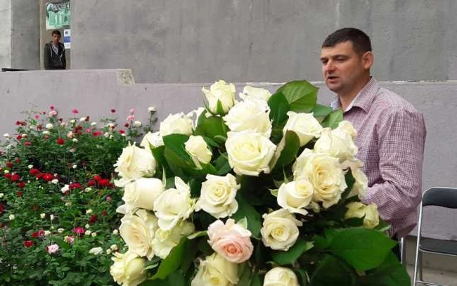 Marian Roşu a vândut bine la Slatina, dar a şi oferit gratuit foarte mulţi trandafiri FOTO: Alina Mitran