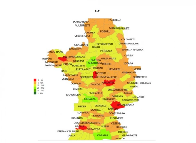 Judeţul Olt nu are nicio localitate în top 10 naţional.