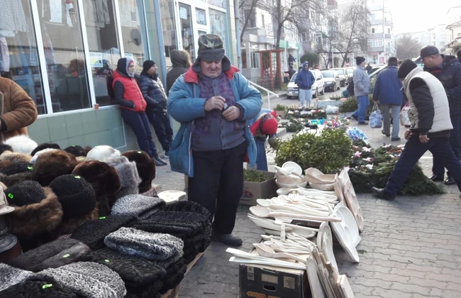 Printre comercianţii care speră să facă vânzare ceva mai bună de Crăciun este şi Gheorghe Barbu, pe care clienţii fideli ştiu că-l pot găsi în piaţă, cu produse cioplite în lemn, mai tot timpul. Acum a vândut foarte bine şi lingurile de lemn, dar şi platourile şi copăile mai mici decât cele folosite odinioară de gospodine pentru frământat, dar la fel de utile. Lingurile de lemn le vinde cu 2,5 lei, dar are şi de făcut cadou.