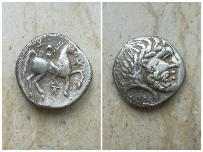 În martie anul trecut, fostul poliţist Paul Durcă a descoperit o adevărată comoară în localitatea Radomireşti din judeţul Olt, pe un teren situat foarte aproape de locuinţa pasionatului căutător de comori: 70 de tetradrahme emise de provincia Macedonia Prima. Tezaurul este încă în proces de evaluare, cel care l-a descoperit neintrând, deocamdată, în posesia banilor care i se cuvin în urma predării monedelor.