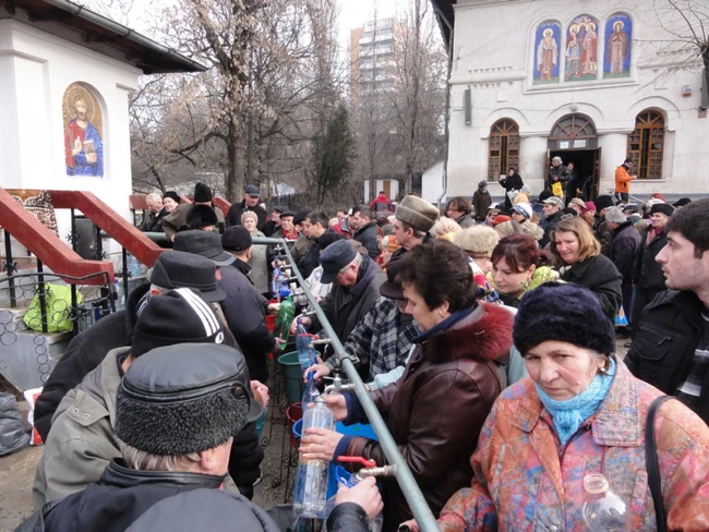 Mariana Dumitru este doar unul dintre miile de credincioşi care, luni, a îndeplinit toate etapele acestei zile: a participat la slujba de sfinţire a apei încă de la primele ore ale zilei, apoi a stat la coadă pentru a intra în posesia agheasmei. Drept recipiente a avut trei sticle de câte 2,5 litri, pe care le-a umplut "ochi" cu mult-râvnita apă sfinţită. Datorită ingeniozităţii celor ce slujesc la Biserica “Sfinţii Împăraţi” din municipiu, aici se utilizează de ani de zile o instalaţie ce facilitează enorm accesul populaţiei la agheasmă printr-o serie de robinete montate pe o ţeavă ce duce la un izvor cu apă sfinţită aflat chiar lângă biserică.