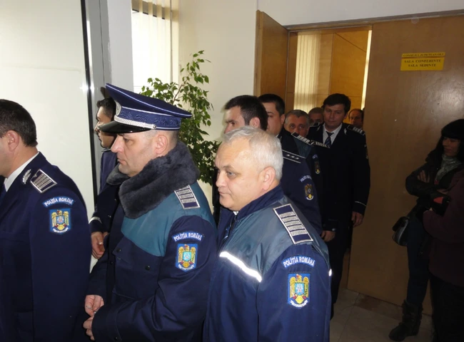 FOTO Poliţiştii de la Olt, muştruluiţi de oficialii de la Bucureşti trimişi la prezentarea bilanţului pe anul trecut