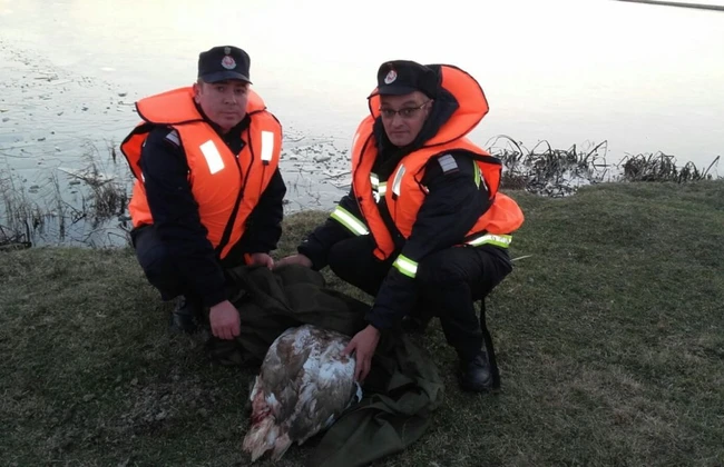 „Pentru a ajunge la pasăre, pompierii au folosit barca pneumatica, au spart cu un topor şi o cange gheaţa groasă de circa patru-cinci centimetri şi au ajuns la aceasta.