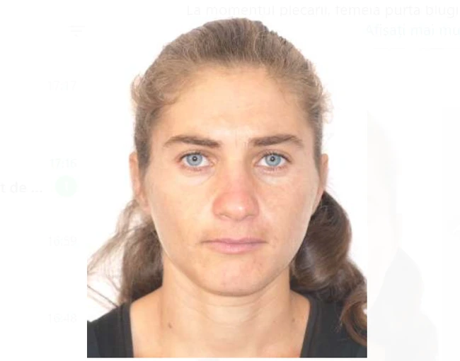„La momentul plecării, femeia purta blugi de culoare albastră, bluză în dungi alb-albastre, vestă de culoare gri camuflaj, iar în picioare purta adidași de culoare albă.