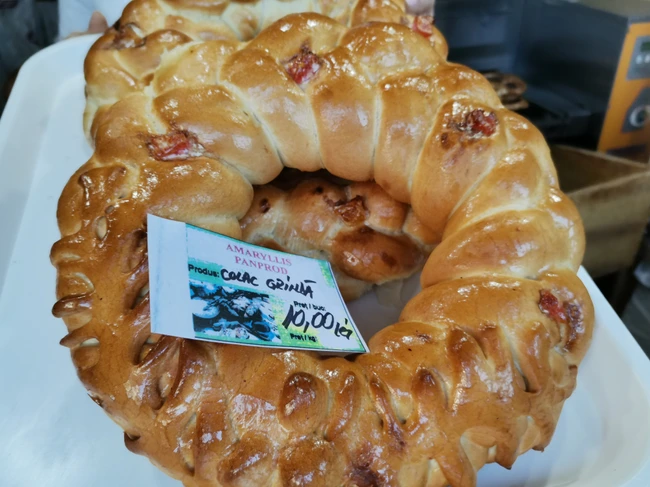 „Se pune un fier la prag, se pune copilul pe prag și-l ridică moașa în sus. Și i se fac urările: să fie sănătos, să fie cuminte, să aibă tot ce vrea în viață... Până la trei ani se dă de grindă”, explică Neli Popescu, o doamnă pe care o întâlnim în cea mai mare piață din Slatina, unde vinde fel de fel de bunătăți de pus pe masa de Revelion.