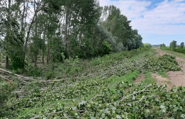 Pădurea de plop de pe malul Dunării, puternic afectată de furtună. Arbori rupţi şi dezrădăcinaţi pe 5 hectare