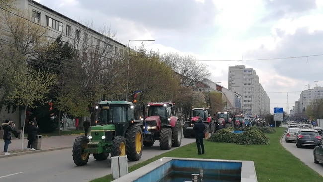 0Fermierii din Olt au protestat cu aproape 70 tractoare și mașini de transport pe străzile municipiului Slatina. Cerealele. uleiul și făina ieftine din Ucraina îi duc în faliment, spun aceștia.