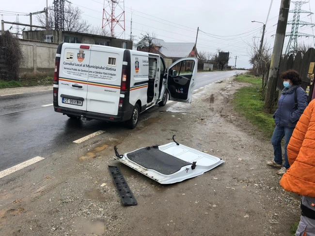 L-a faţa locului a fost identificată o femeie de 62 de ani, din mun.Slatina, care, dorind să asiste la capturarea unui câine de către lucrătorii Serviciului public de gestionare al câinilor fără stăpân Slatina, în momentul plecării acestora de pe loc cu o autoutilitară, femeia ar fi rămas cu mâna stângă pe portieră, moment în care portiera s-a rupt şi a căzut pe sol.