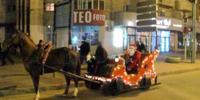 Moş Crăciun şi-a luat viză de flotant şi s-a mutat până-n Ajun în Slatina. În fiecare seară, va ieşi pe străzile municipiului şi va împărţi daruri copiilor cuminţi. Cum nu a nins încă, şi-a adaptat mijlocul de transport, aşa că nu a venit cu sania trasă de reni, ci cu o trăsură trasă de un cal, cu număr de înmatriculare „Moş Crăciun 2010”. Pentru a nu fi atacat, este păzit de două echipaje de poliţişti comunitari. Deşi copiii mai mari au făcut coadă la trăsura moşului, numai cei mici au fost răsplătiţi cu daruri.