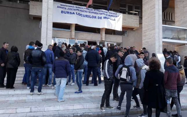 De masa unde un reprezentant al AJOFM Olt suplineşte angajatorul care caută bucătar, ajutor de bucătar şi personal hotelier, pentru Herculane, se apropie o doamnă care a mai cercetat, până aici, şi alte oferte. „Am aproape 50 de ani, am lucrat ca asistent social, îngrijeam o persoană, dar am intrat în şomaj. Am 450 de lei şomajul, normal că vreau să-mi găsesc de lucru, altfel, ce fac, cu ce trăim? Să plecăm toţi în străinătate, să stăm pe ajutorul social, 130 de lei?!“, încearcă femeia să convingă. Pe lângă ea trec însă zeci de persoane, mai tinere chiar, grăbite să obţină viza pe carnetul de şomer sau ştampila pe adeverinţa pe care o duc la primărie, pentru dosarul de ajutor social, şi să-şi vadă de drum.