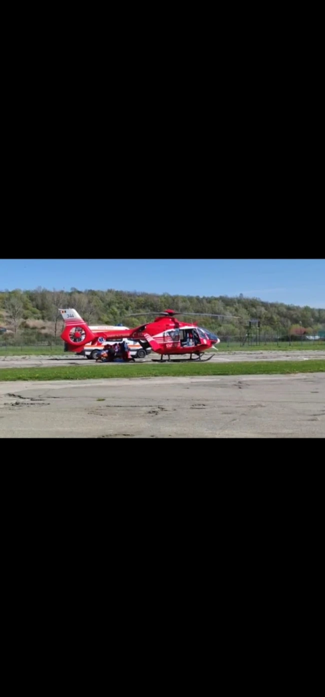 Transferul pacientului de la SJU Slatina către spitalul din bucureşti se realizează cu un elicopter SMURD.
