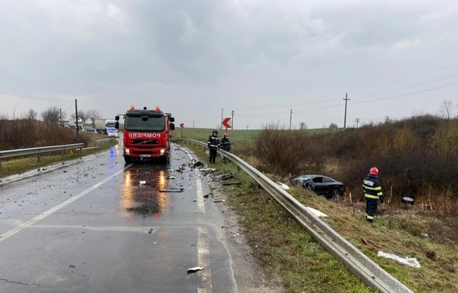 Autoturismului care circula cu viteză pe un carosabil umed, condus de un tânăr de 22 ani, s-a ciocnit în curbă cu un autocamion. În urma impactului autoturismul a fost proiectat peste parapet, ajungând în şanţ, conducătorul auto fiind rănit grav. Rănit a fost şi şoferul autocamionului, care de asemenea a ajuns la spital.