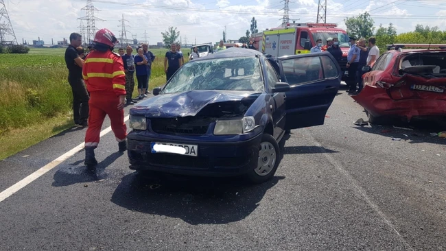 UPDATE: Patru persoane au fost transportate la spital în urma accidentului în care două autoturisme şi un autocamion au fost implicate. Printre victime se află o fetiţă în vârstă de 6 ani, cu răni grave, conştientă, dar necooperantă.
