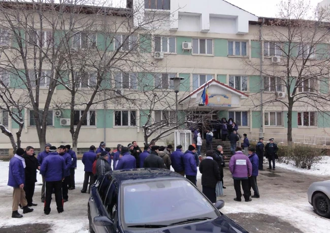 Sediul Poliţiei municipale Slatina a fost luat cu asalt de susţinătorii PPDD pe toată durata audierilor cu suspecţii scandalului din centrul urbei FOTO Mugurel Manea gallery-link