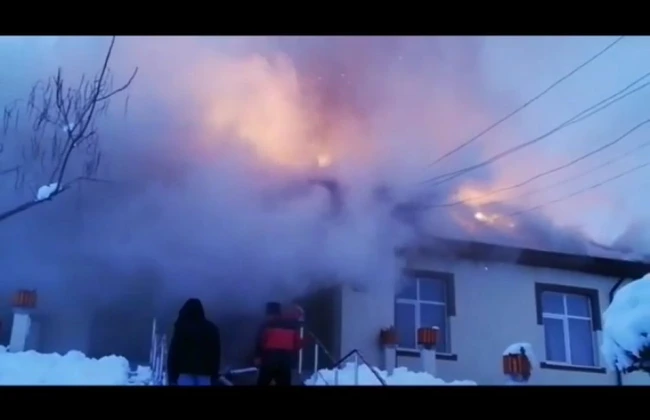 0Flăcările au cuprins acoperişul clădirii şi bunurile depozitate